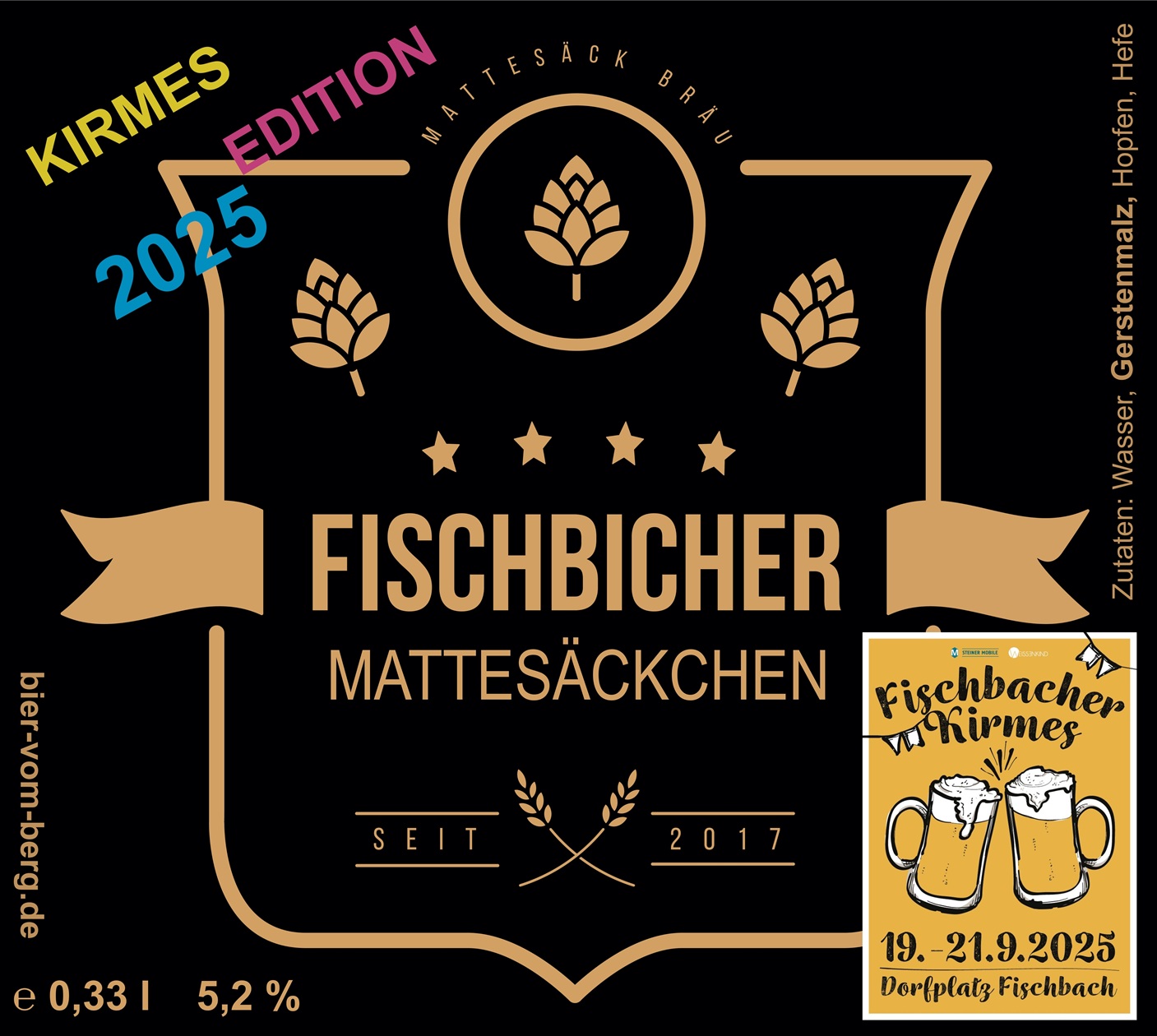 Erik Eriks-Bier.de Fischbicher Mattesäck Bräu Mattesack Quarkbeutel Fischbacher Bier Emsetal Tabarz Waltershausen Bergbühne Zigeunerkeller Feuerwehr Feuerwehrverein Heimat- und Traditionsverein Löschmittel Hobbybrauer Garage Heimbräu Craftbeer Craft-Beer handwerklich gebraut Brauanlage Maischen Läutern Würze kochen Kühlen Gärung gären Bier vom Berg bier-vom-berg.de Treber Malz schroten Schrotmühle anschwänzen überschwänzen Kocher Gaskocher Kirmes Kirmesgesellschaft Schloss Lagern Doppelter Oskar Plattenkühler Plattenwärmetauscher Hefe obergärig untergärig Sedimentation Trub Trubkegel Hopfentreber Hopfen Aroma Bitterhopfen Pellets Hauptzollamt Biersteuer ermäßigter Steuersatz Steueranmeldung Schaum Schaumkrone Blume Gerbstoffe Vergärungsgrad Alkohol vol.% %vol. Sandberg Fischbach Inselsberg Rührwerk Antrieb Motor Schlauch Hauptguss Nachgüsse Schüttung Spezialmalz Gerste Haferflocken Weizenmalz Weizen unvermälzt Röstgerste Malzmühle Infusion Dekoktion Kombimaische Maltose Dextrine Verzuckerung Schwarzbier Oatmeal Stout Landbier Märzen Festbier Hell Helles Pilsener Wiener Chocolate Münchener Hauptgärung Nachgärung Kohlensäure CO2 Kronenkorken Kronkorken Bügelverschluss Etikett Reinigung reinigen abfüllen Abfüllung Klärung Infektion desinfizieren Kräusen Gärtemperatur Gärführung Restextrakt Vollmundigkeit Restsüße EBC Trübung sauer Eiweiß Stärke Zucker Zuckergehalt Sacharose Spindel spindeln Refaktometer Brix Plato Stammwürze Pfanne voll Kochende Brauerei Oettinger Öttinger Gotha Thüringen unser Dorf hat Wochenende Ausschlagwürze Kaltwürze Kalthopfung Stopfen Hopfenstopfen IPA India Pale Ale Bruderbier Freundebier Manne's Mannschaftsgetränk Weihnachtsbier Füschbicher 1103 Kupfernes IBU Tettnanger Mandarina Bavaria Magnum Hüll Melon Perle Cascade Simcoe Citra Tradition Mittelfrüh Mosaic Saphir Smaragd Polaris Sandberger Fuggles Northern Brewer Spalter Select Amarillo Antrunk Rezenz Abgang Autolyse Dunkelschön Mattesaäck Mattesäckchen Eriks Schwarzes Löschmittel Bruderbier Freundebier Mannschaftsgetränk Kupfernes SPA Sandberg Pale Ale mdr-Edition Kirmes-Edition Oatmeal Stout