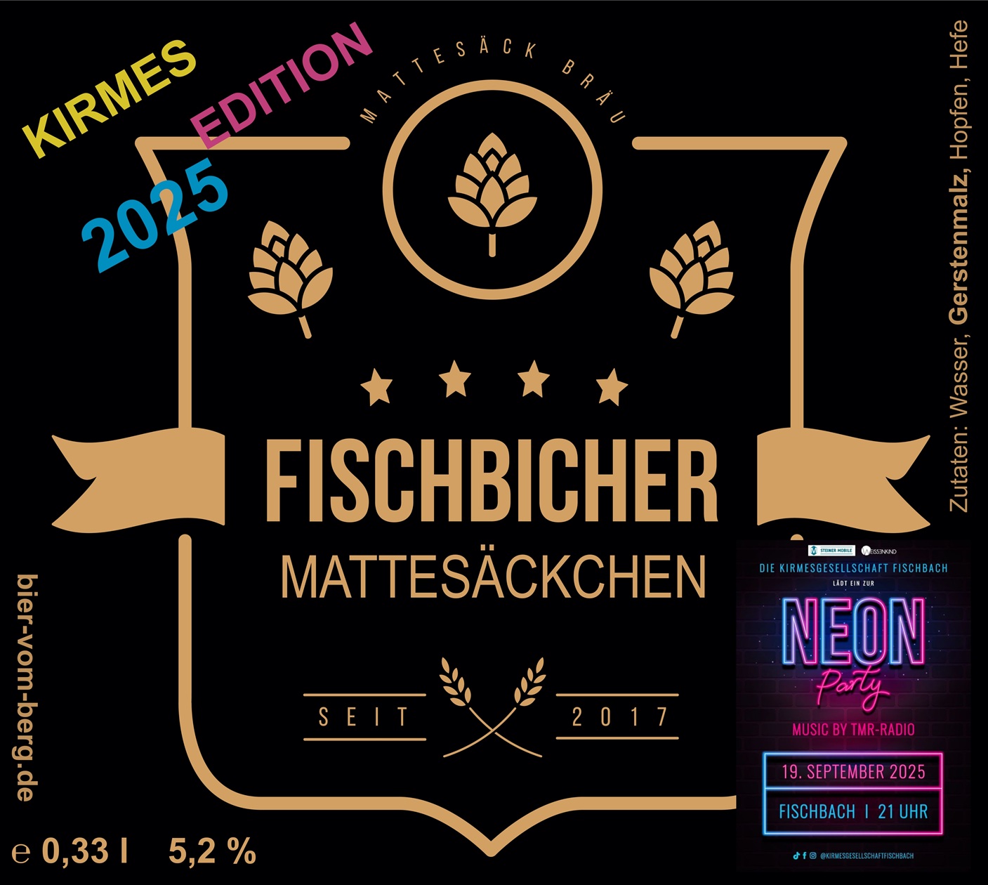 Erik Eriks-Bier.de Fischbicher Mattesäck Bräu Mattesack Quarkbeutel Fischbacher Bier Emsetal Tabarz Waltershausen Bergbühne Zigeunerkeller Feuerwehr Feuerwehrverein Heimat- und Traditionsverein Löschmittel Hobbybrauer Garage Heimbräu Craftbeer Craft-Beer handwerklich gebraut Brauanlage Maischen Läutern Würze kochen Kühlen Gärung gären Bier vom Berg bier-vom-berg.de Treber Malz schroten Schrotmühle anschwänzen überschwänzen Kocher Gaskocher Kirmes Kirmesgesellschaft Schloss Lagern Doppelter Oskar Plattenkühler Plattenwärmetauscher Hefe obergärig untergärig Sedimentation Trub Trubkegel Hopfentreber Hopfen Aroma Bitterhopfen Pellets Hauptzollamt Biersteuer ermäßigter Steuersatz Steueranmeldung Schaum Schaumkrone Blume Gerbstoffe Vergärungsgrad Alkohol vol.% %vol. Sandberg Fischbach Inselsberg Rührwerk Antrieb Motor Schlauch Hauptguss Nachgüsse Schüttung Spezialmalz Gerste Haferflocken Weizenmalz Weizen unvermälzt Röstgerste Malzmühle Infusion Dekoktion Kombimaische Maltose Dextrine Verzuckerung Schwarzbier Oatmeal Stout Landbier Märzen Festbier Hell Helles Pilsener Wiener Chocolate Münchener Hauptgärung Nachgärung Kohlensäure CO2 Kronenkorken Kronkorken Bügelverschluss Etikett Reinigung reinigen abfüllen Abfüllung Klärung Infektion desinfizieren Kräusen Gärtemperatur Gärführung Restextrakt Vollmundigkeit Restsüße EBC Trübung sauer Eiweiß Stärke Zucker Zuckergehalt Sacharose Spindel spindeln Refaktometer Brix Plato Stammwürze Pfanne voll Kochende Brauerei Oettinger Öttinger Gotha Thüringen unser Dorf hat Wochenende Ausschlagwürze Kaltwürze Kalthopfung Stopfen Hopfenstopfen IPA India Pale Ale Bruderbier Freundebier Manne's Mannschaftsgetränk Weihnachtsbier Füschbicher 1103 Kupfernes IBU Tettnanger Mandarina Bavaria Magnum Hüll Melon Perle Cascade Simcoe Citra Tradition Mittelfrüh Mosaic Saphir Smaragd Polaris Sandberger Fuggles Northern Brewer Spalter Select Amarillo Antrunk Rezenz Abgang Autolyse Dunkelschön Mattesaäck Mattesäckchen Eriks Schwarzes Löschmittel Bruderbier Freundebier Mannschaftsgetränk Kupfernes SPA Sandberg Pale Ale mdr-Edition Kirmes-Edition Oatmeal Stout